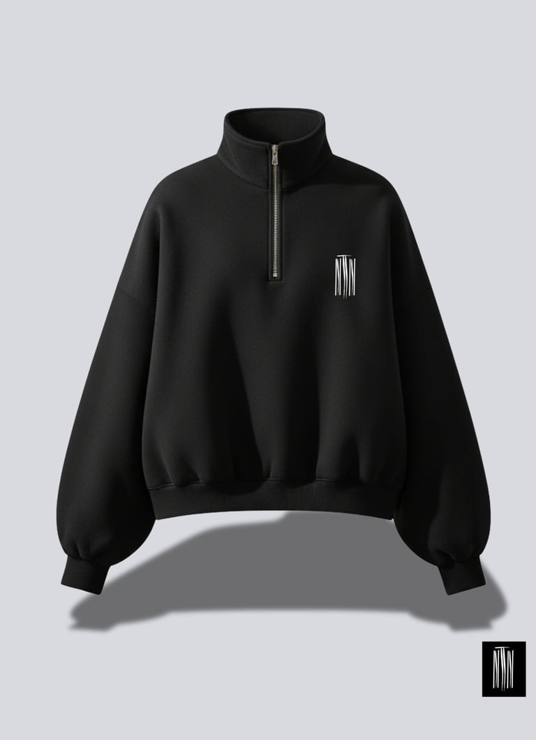 Sweat The Black Chapter Oversize à Demi-Fermeture Streetwear Minimaliste Unisexe.